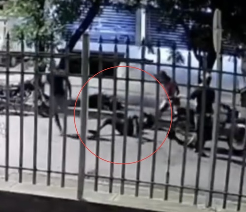 Las imágenes muestran cómo cuatro hombres que se movilizaban en motocicleta interceptan a un peatón desprevenido y lo reducen a la fuerza. Sin darle opción de escapar, lo golpean en repetidas ocasiones con palos hasta dejarlo tirado en el suelo.