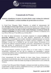 Rodríguez no ha dado más declaraciones a medios, pero sus palabras sugieren que buscará controvertir el fallo. Mientras tanto, el equipo legal de Beéle sostiene que la decisión representa un “paso firme en la lucha contra la violencia intrafamiliar”.