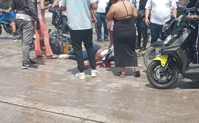 El siniestro se registró pasadas las horas del mediodía, cuando una motocicleta perdió el control y sus ocupantes cayeron violentamente sobre el pavimento. Testigos afirmaron que el conductor sufrió lesiones menores, mientras que la mujer resultó gravemente afectada.