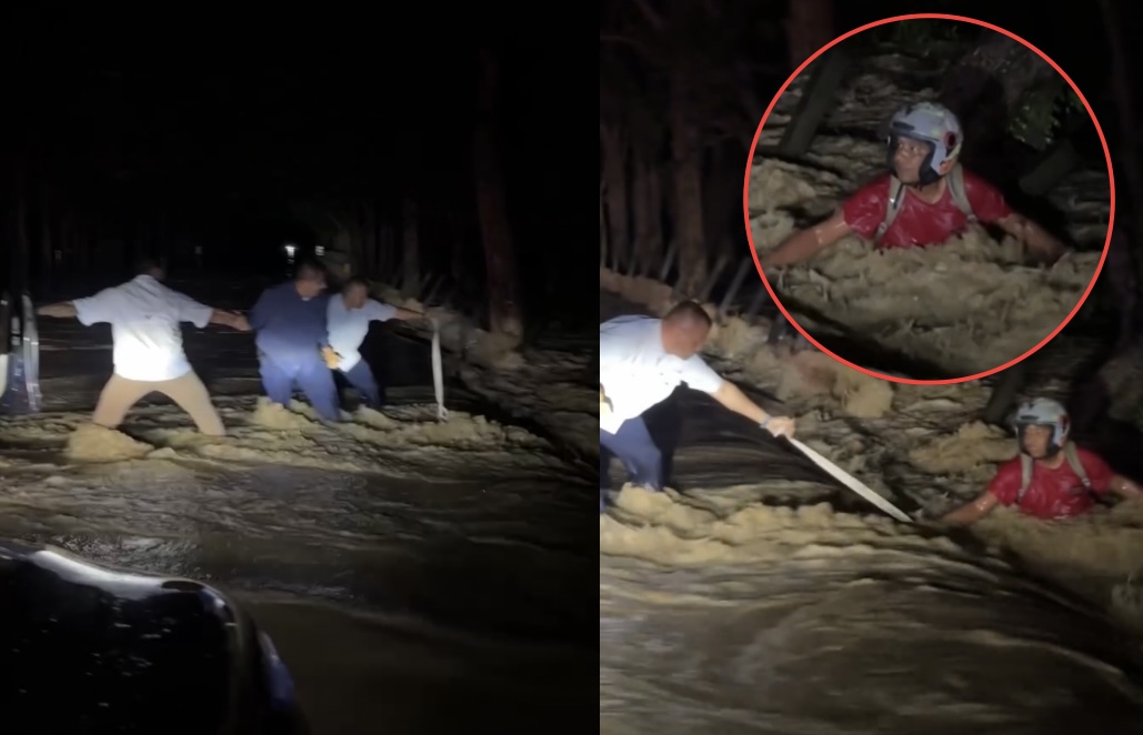 El motociclista, de 28 años, permanecía aferrado a su vehículo mientras la fuerza del agua lo desplazaba lentamente, dificultando cualquier intento de escape y aumentando el riesgo de ser arrastrado río abajo.