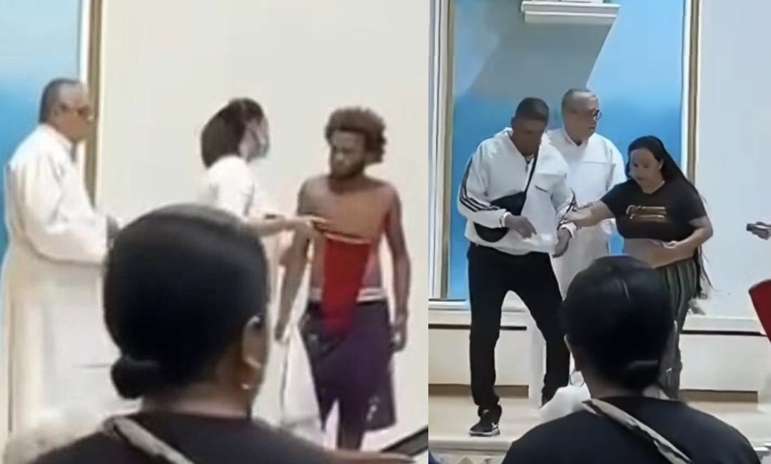 Ante la situación, el sacerdote intervino y pidió calma a los asistentes, insistiendo en que el lugar no debía convertirse en escenario de violencia, mientras intentaba evitar que el hombre fuera golpeado.