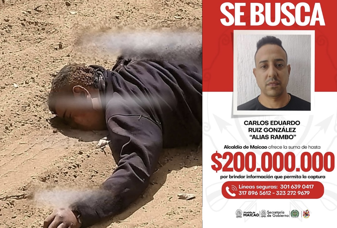 Las autoridades confirmaron el hallazgo del cuerpo sin vida de Carlos Eduardo Ruiz González, conocido con el alias de ‘Rambo’, en un sector rural del municipio de Maicao, en el departamento de La Guajira.