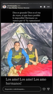 Por su parte, Luis Ayala compartió un video en el que aparece cargado sobre los hombros de Miguel y acompañó la imagen con el mensaje: “Gracias Dios mío, qué felicidad tan grande”, reflejando la emoción que embargó al núcleo familiar tras 15 días de incertidumbre.