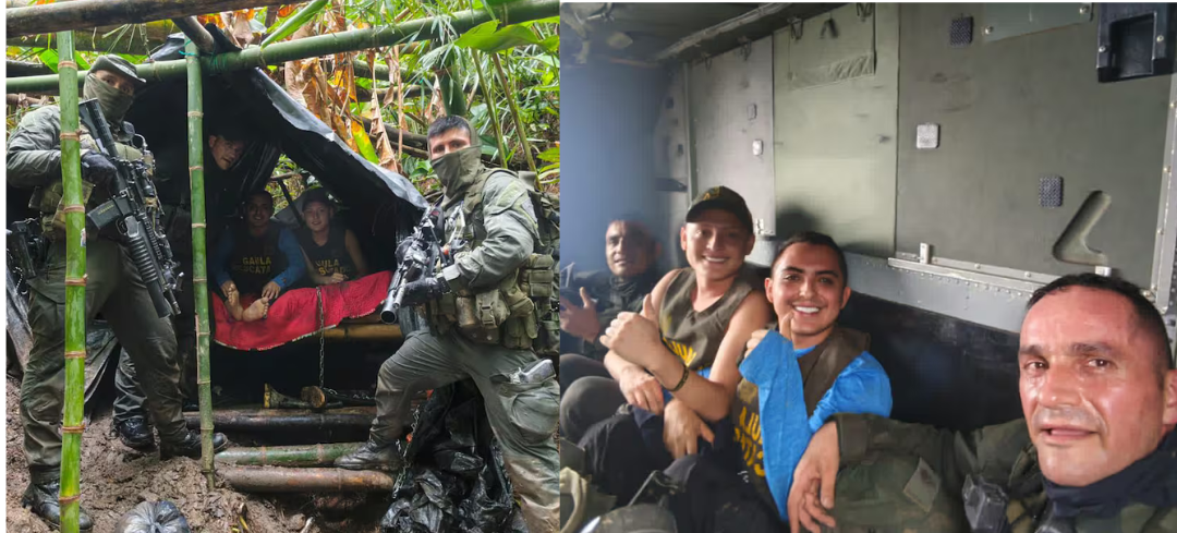 La acción de rescate se llevó a cabo mediante un despliegue conjunto de unidades especializadas, entre ellas los Comandos Jungla, el grupo GOES, apoyo aéreo de la Policía Nacional y personal de la Fuerza Aeroespacial Colombiana, quienes lograron ubicar el punto exacto donde las víctimas estaban retenidas luego de labores de inteligencia y seguimiento adelantadas durante varios días.