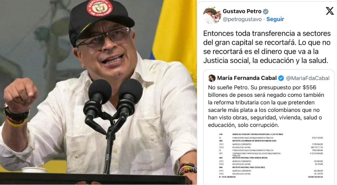 Pero eso no fue todo. A través de su cuenta en X (antes Twitter), la senadora María Fernanda Cabal lanzó una crítica directa al Ejecutivo: “No sueñe, Petro. Su presupuesto por $556 billones será negado, al igual que la reforma tributaria con la que pretenden sacarle más plata a los colombianos que no han visto obras, ni seguridad, ni vivienda, ni salud o educación. Solo corrupción.”